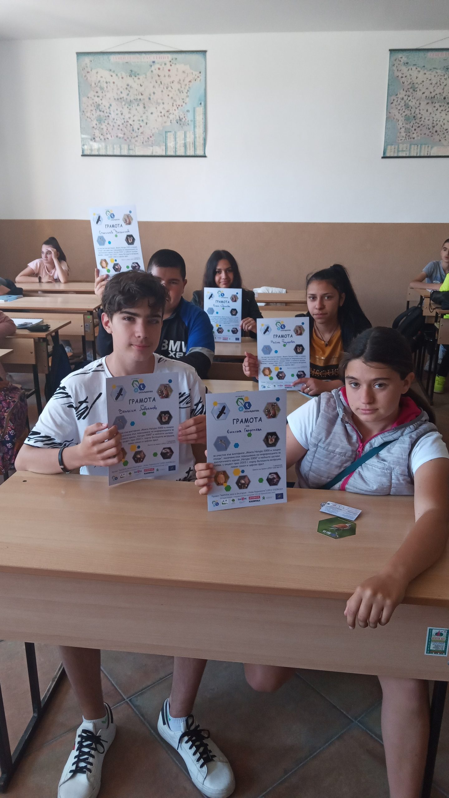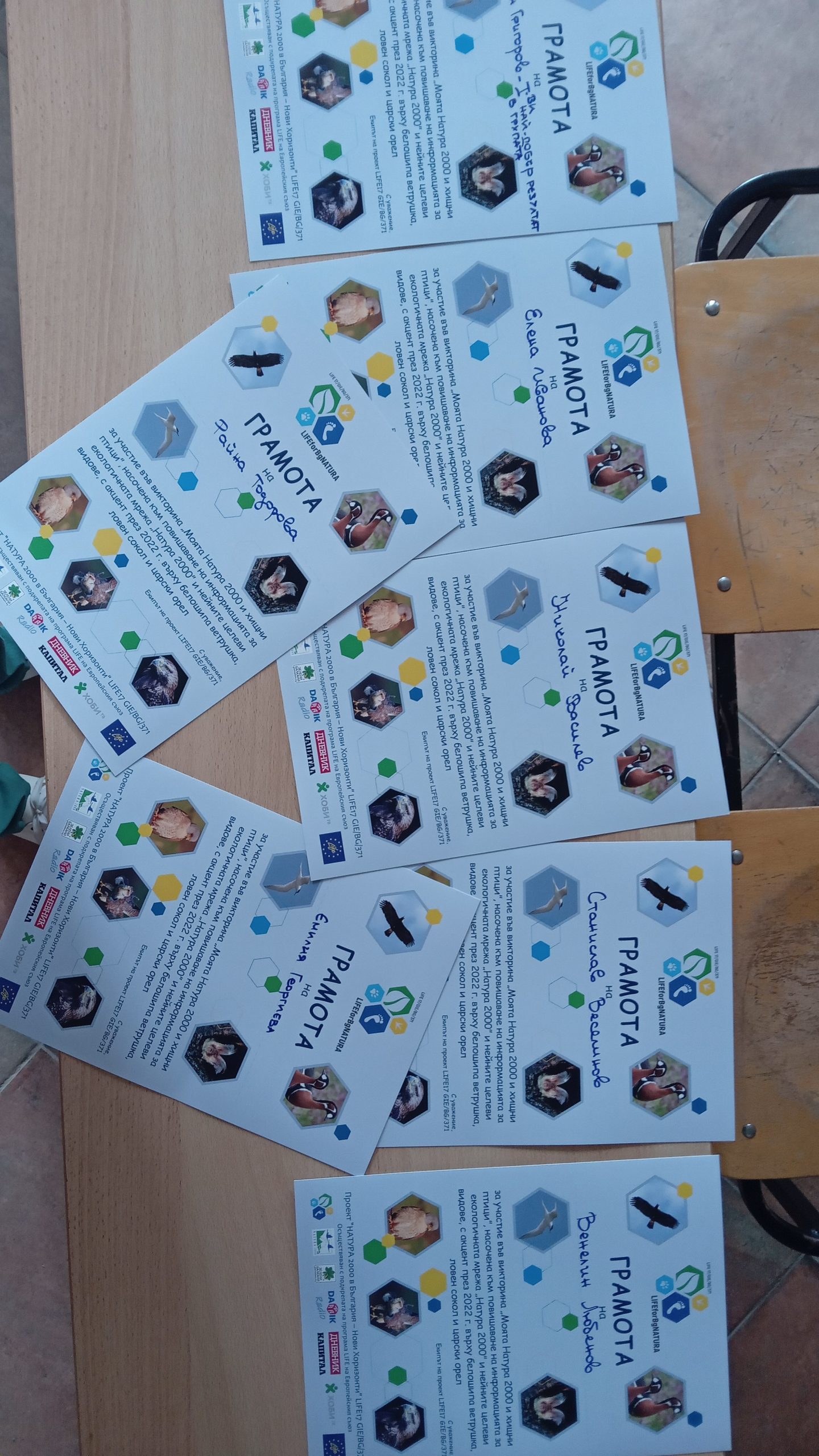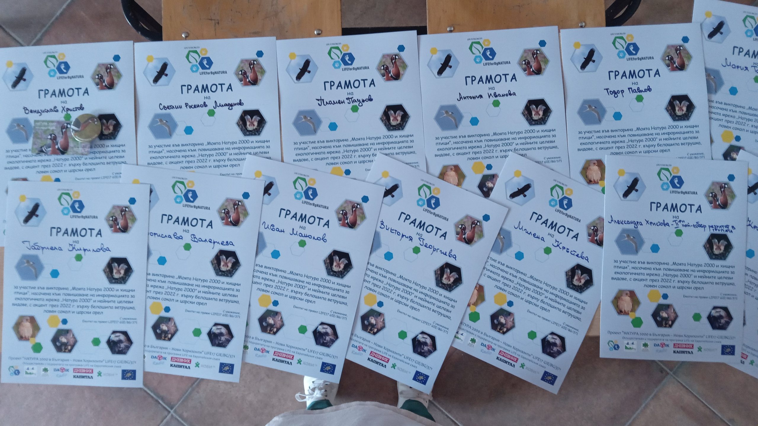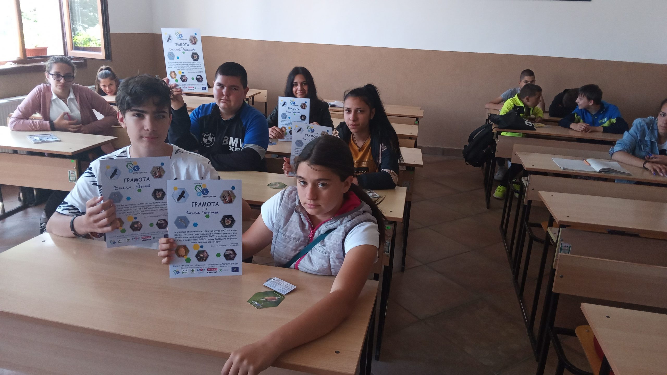 За втора поредна година учениците от 8-ми и 9-ти клас,взеха участие във Викторина- организираната от Зелени Балкани на тема „Натура 2000 и хищни птици“.