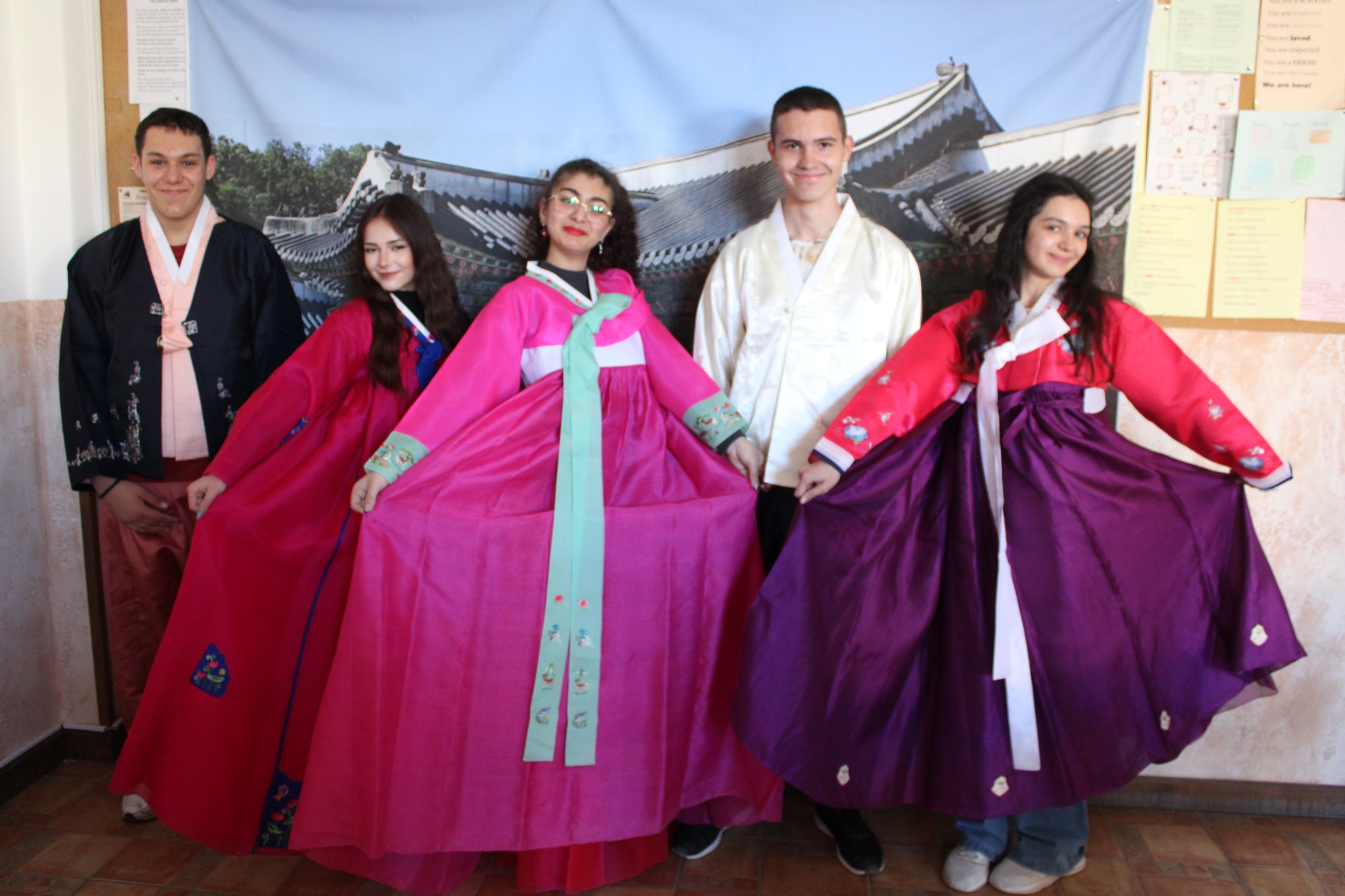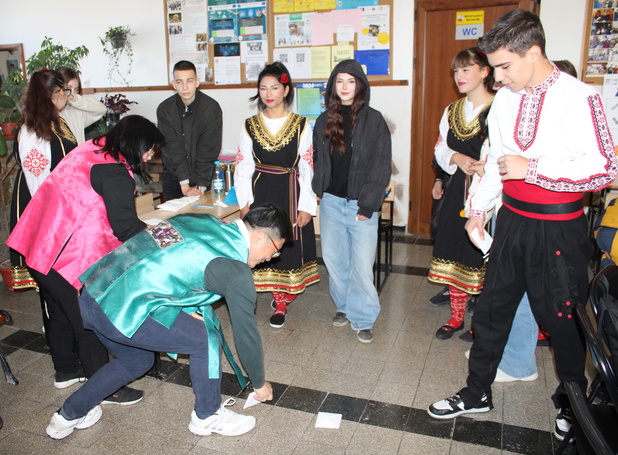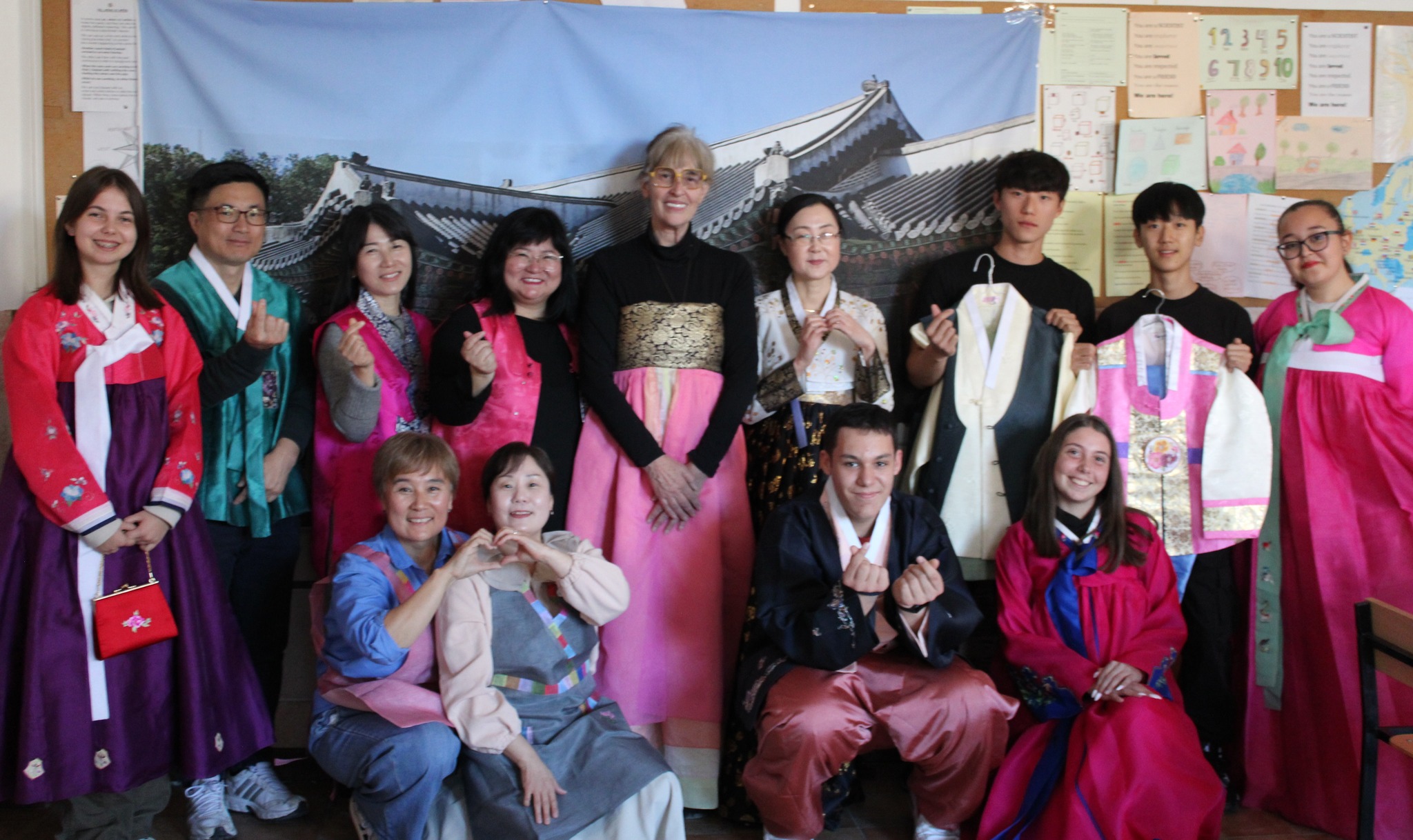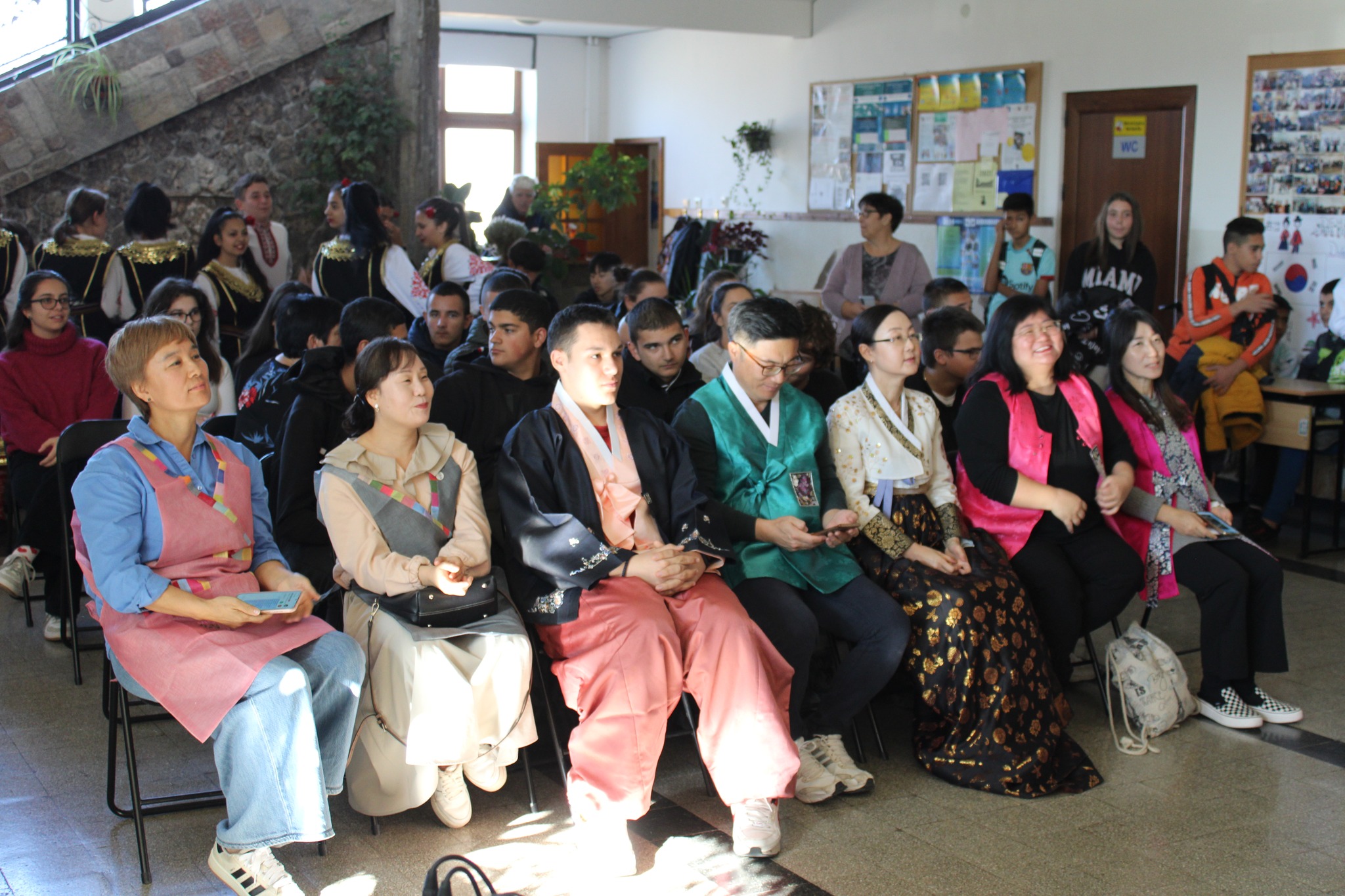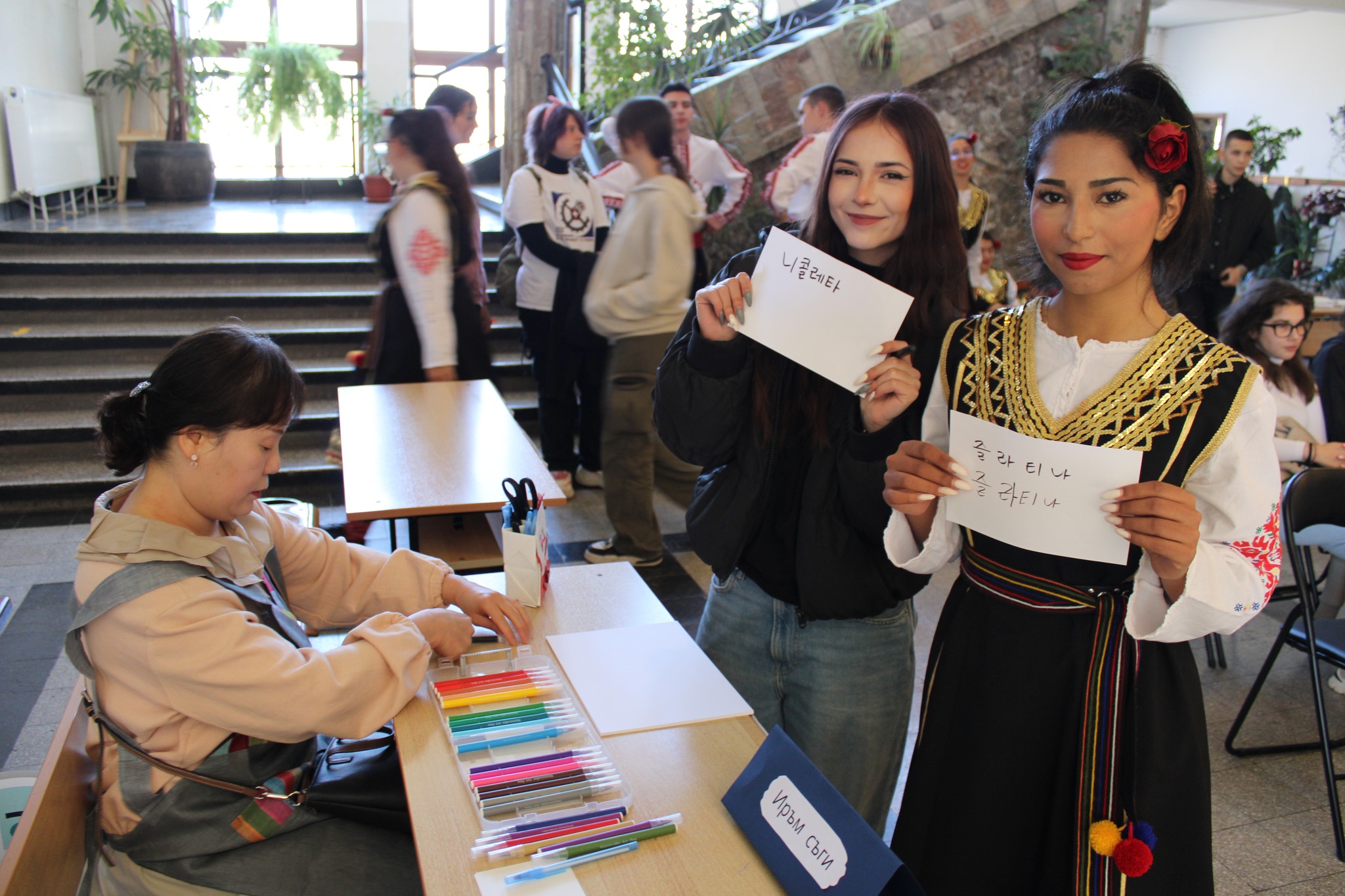 След вълнуващите срещи с културата и традициите на Япония и Сърбия, Ученическият съвет и скъпите ни гости/ включително преподаватели в катедра Кореистика във Факултет по класически и нови филологии на СУ „Св. Климент Охридски“/ ни предизвикаха приятно с участие в разнообразни работилници, пренасяйки ни в атмосферата на традициите, игрите, облеклото, корейската писменост и музика…