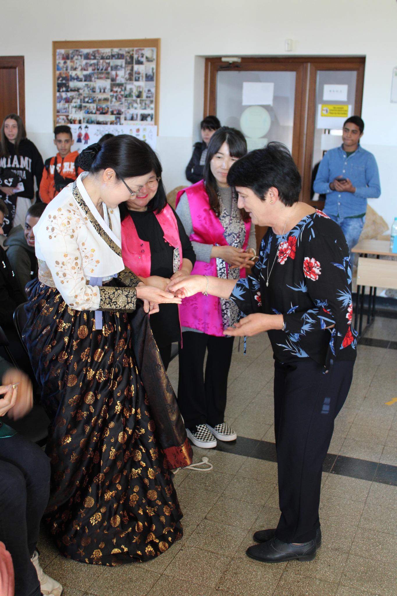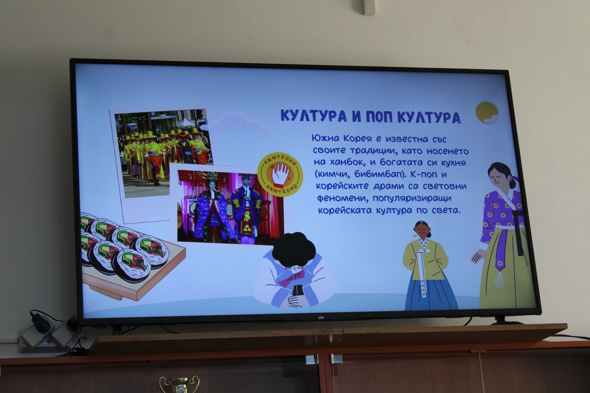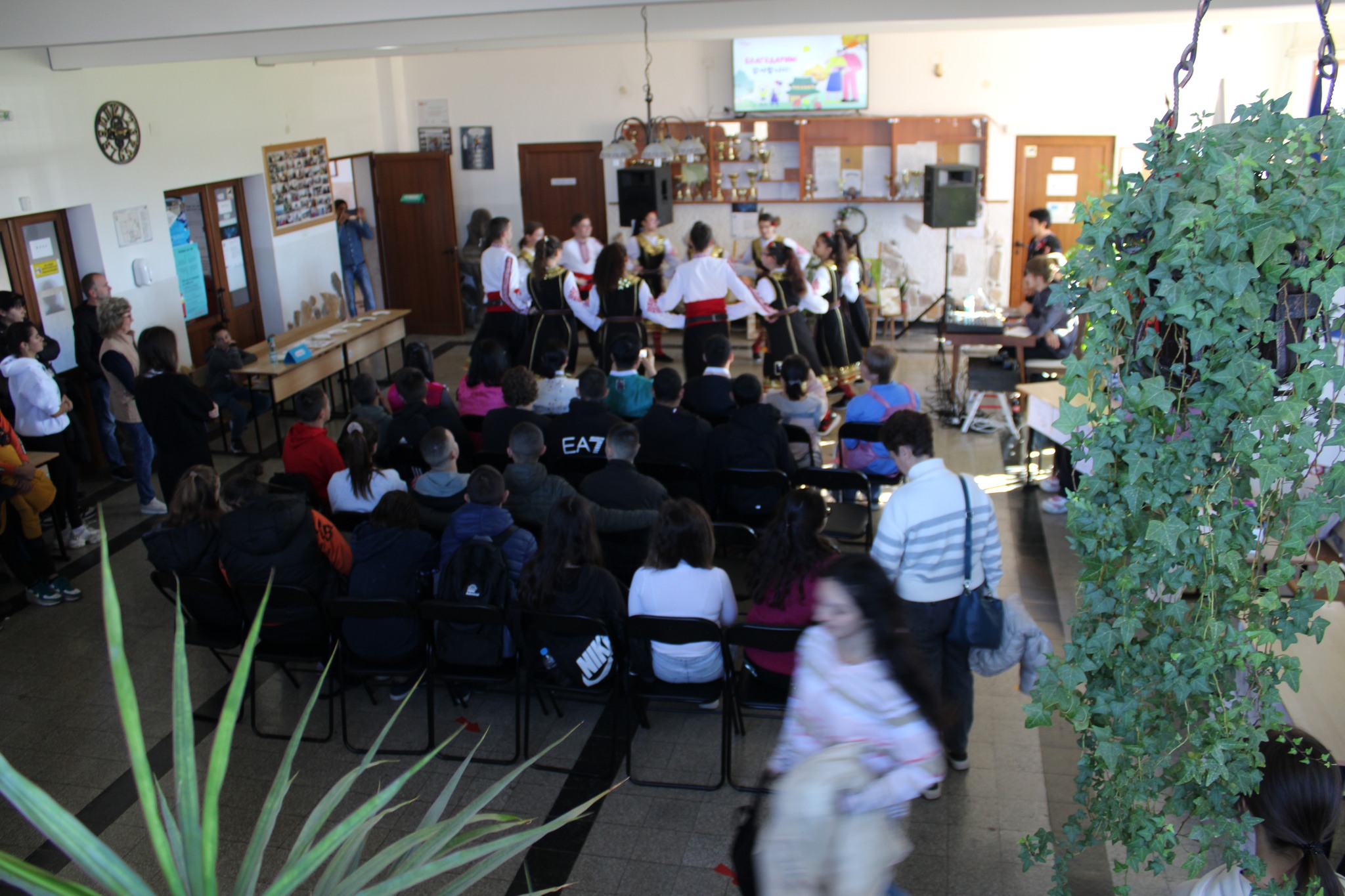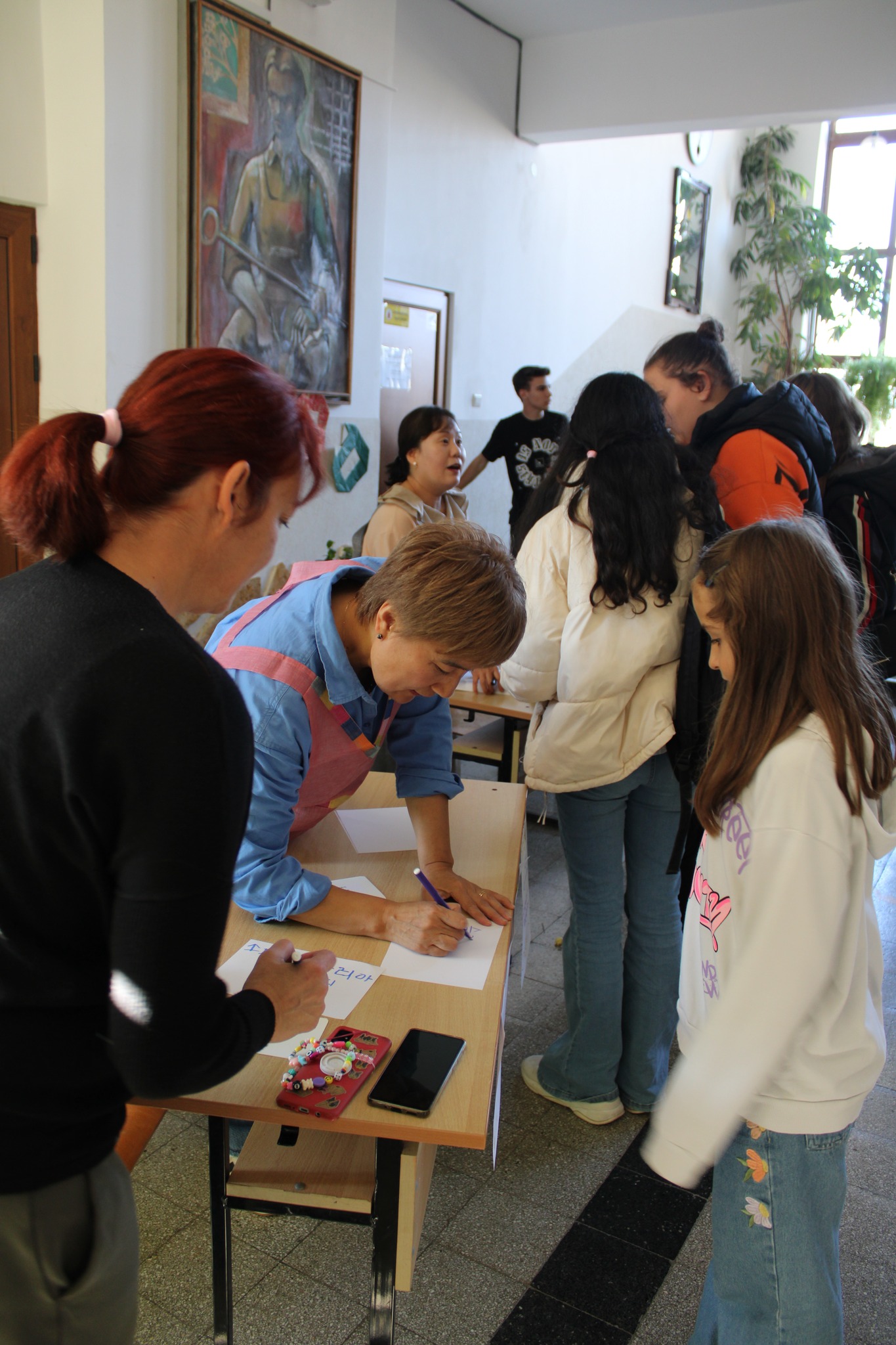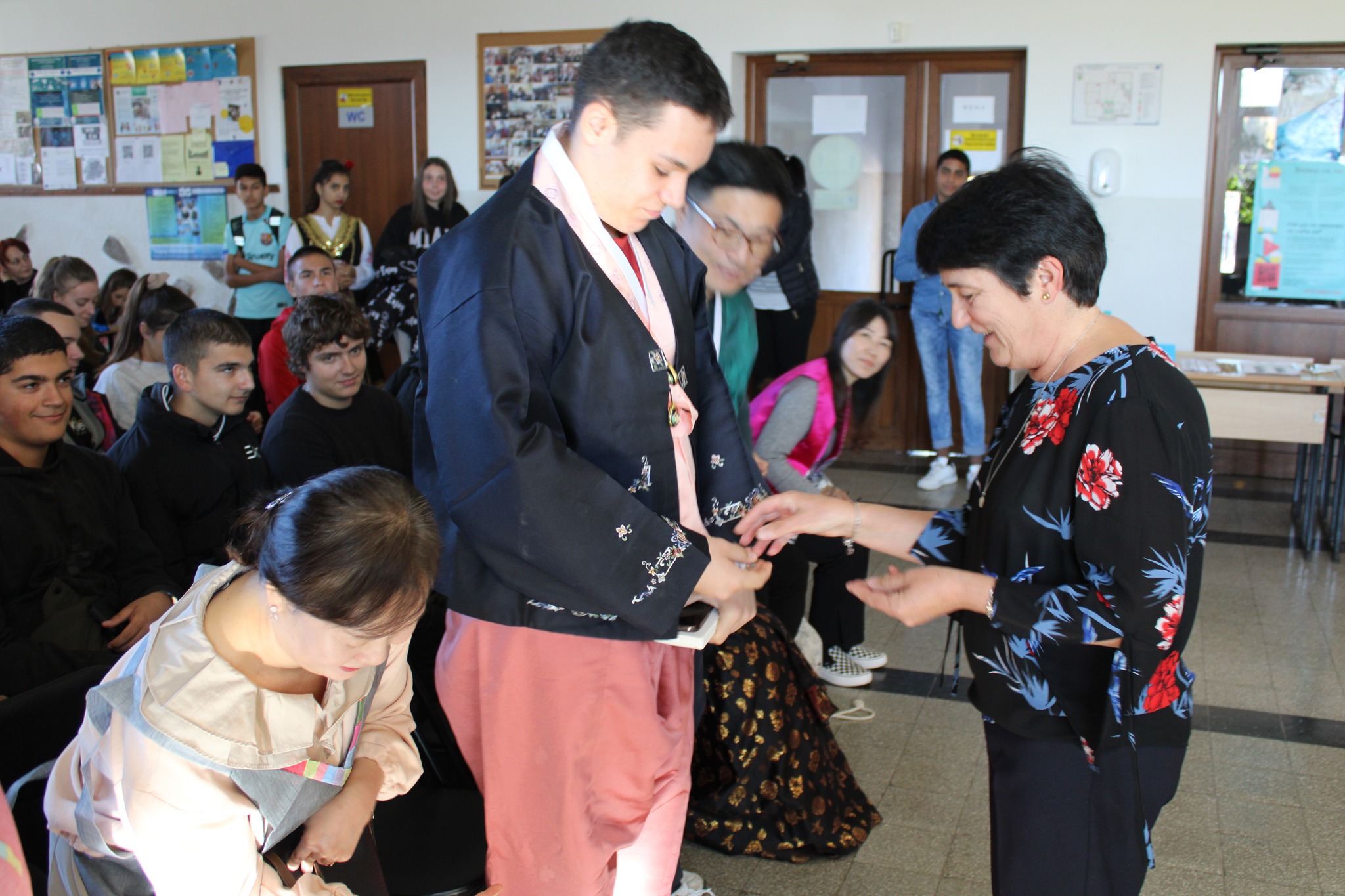 След вълнуващите срещи с културата и традициите на Япония и Сърбия, Ученическият съвет и скъпите ни гости/ включително преподаватели в катедра Кореистика във Факултет по класически и нови филологии на СУ „Св. Климент Охридски“/ ни предизвикаха приятно с участие в разнообразни работилници, пренасяйки ни в атмосферата на традициите, игрите, облеклото, корейската писменост и музика…
