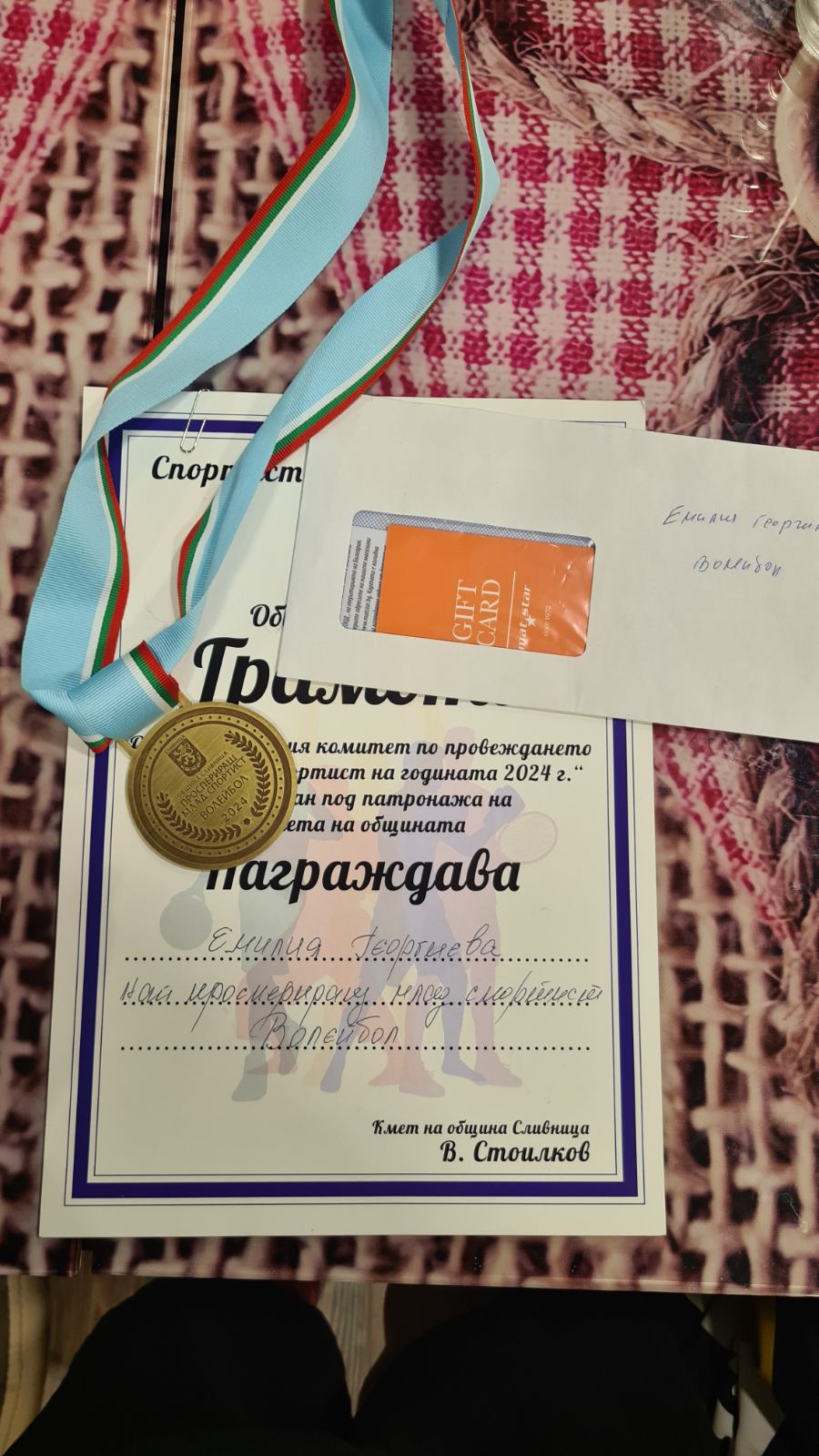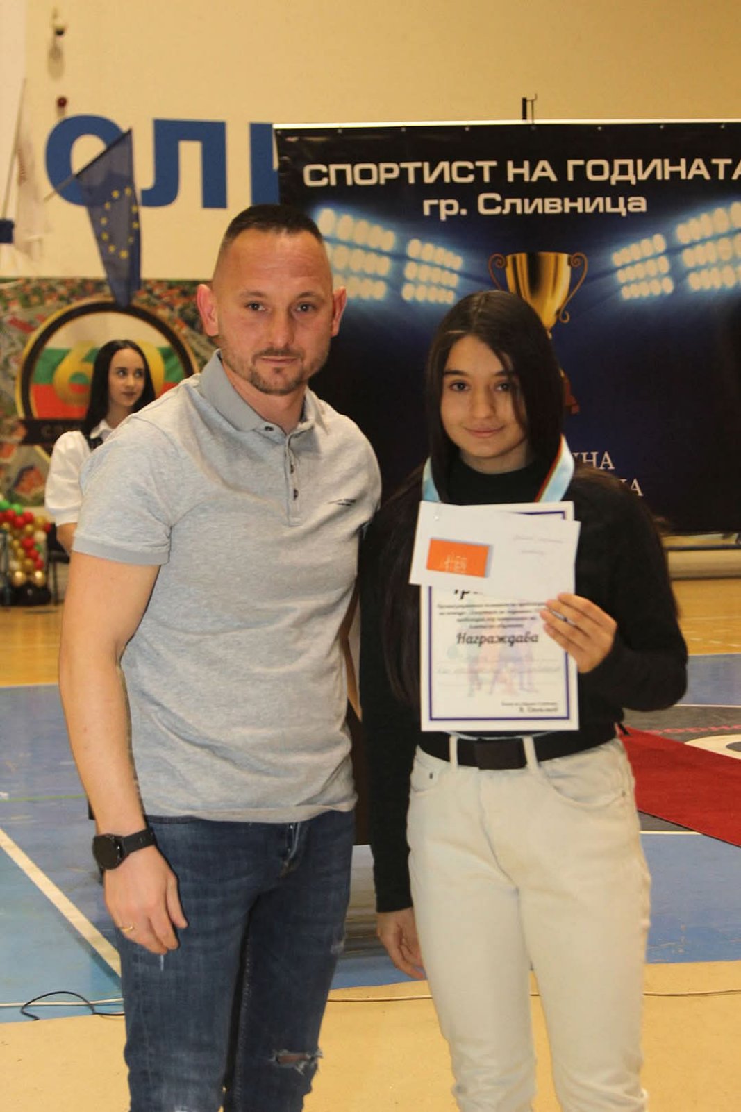 Също така, с гордост бе отличена и Емилия Георгиева от 11 клас на ПГТ „Н. Й. Вапцаров“. Тя бе наградена с приза „Най-проспериращ млад спортист“ за 2024 г. за своите изключителни успехи във волейбола. Емилия, с труд и упоритост, не само носи успехи на училището и града, но е и пример за младите спортисти в общността.