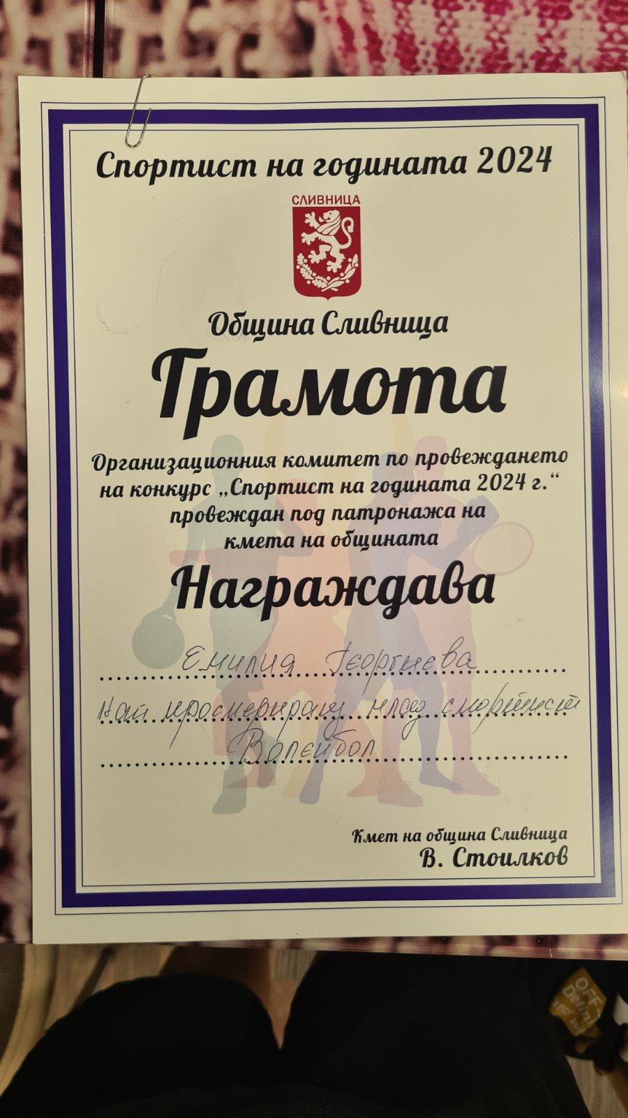 Спортист на годината 2024г.