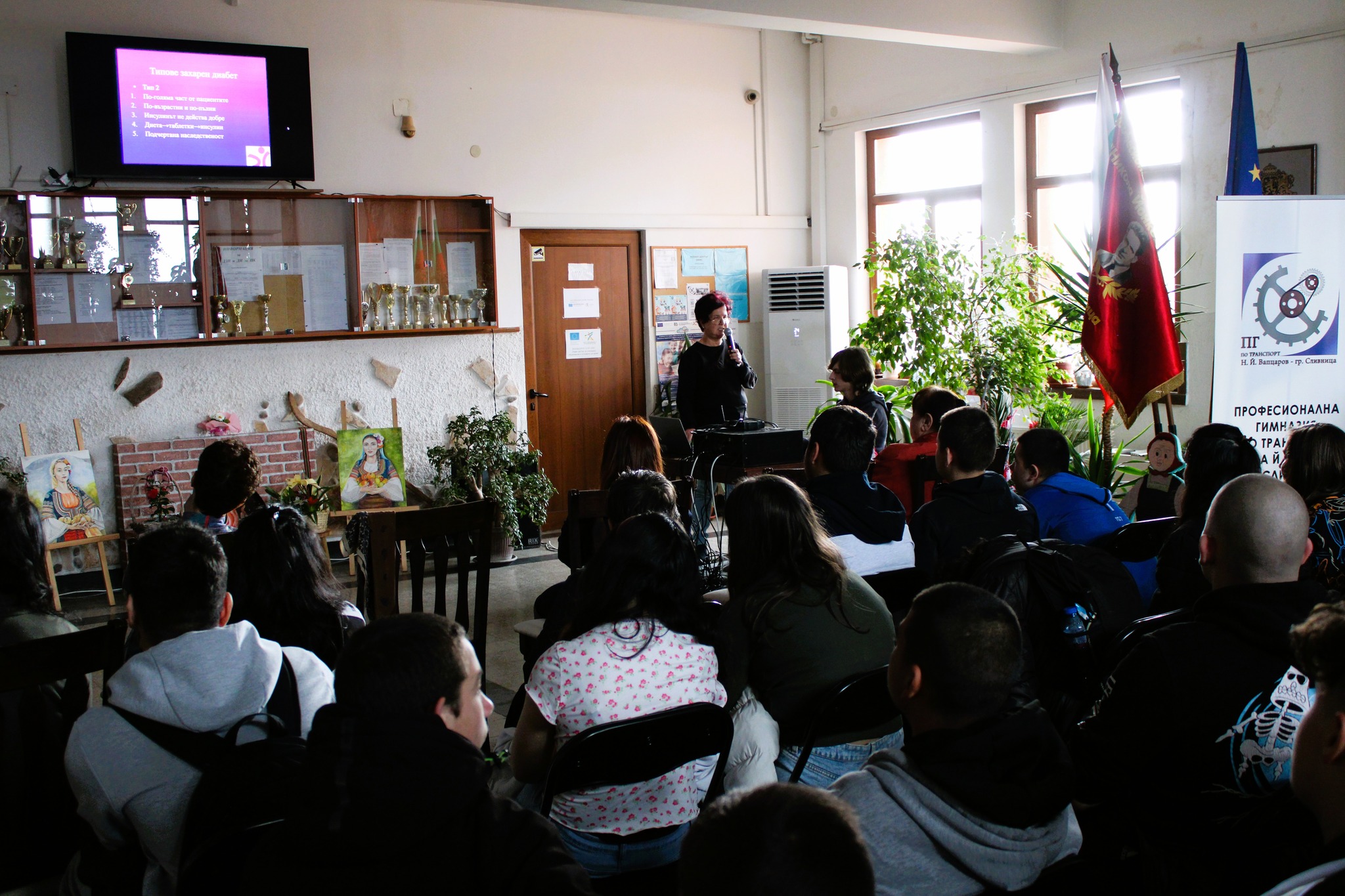 Днес, 12.03.2024 г. в ПГ по транспорт „Н.Й.Вапцаров“, със съдействието на г-жа Райна Димитрова от Диабетно дружество Сливница, се проведе среща с учениците от училището и акад. проф. д-р Ивона Даскалова,дмн, Председател на УС на Българска Диабетна Асоциация и г-жа Ралица Петкова, обучител „Здравословно хранене“. Лекцията беше на тема – „Здравословен модел на хранене и двигателен режим“. Събеседване, даване на практически препоръки и съвети за поддържане на здравословни навици в ежедневието. „Поддържането на активен начин на живот, здравословното хранене, хранителният режим и намаляването на ежедневните нива на стреса са от изключително значение при младежите“, подчерта проф. Ивона Даскалова.